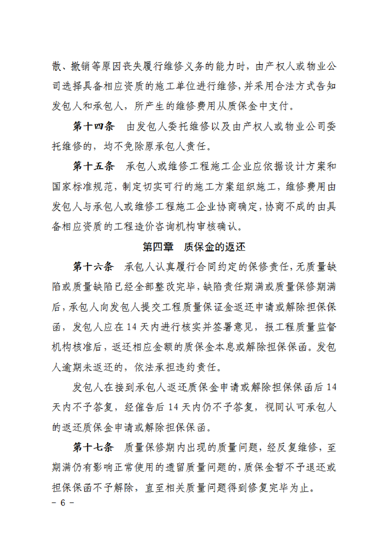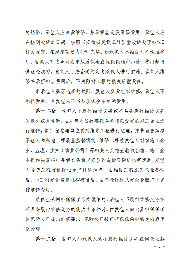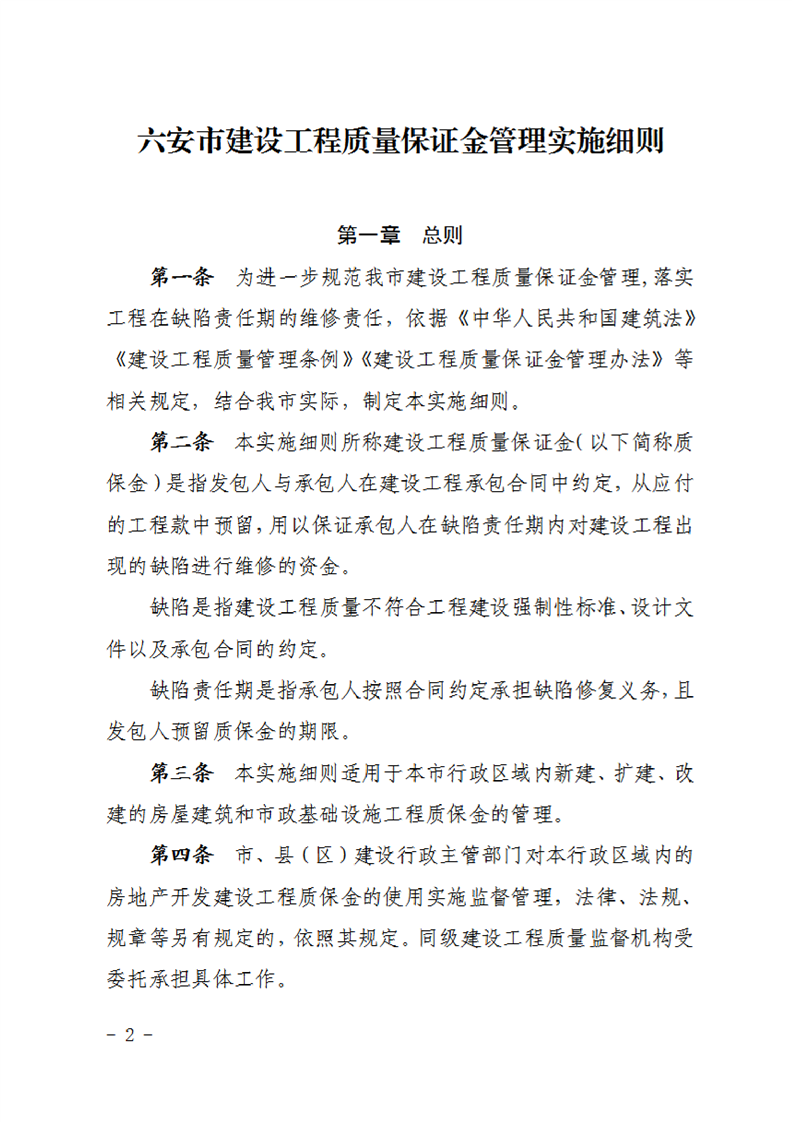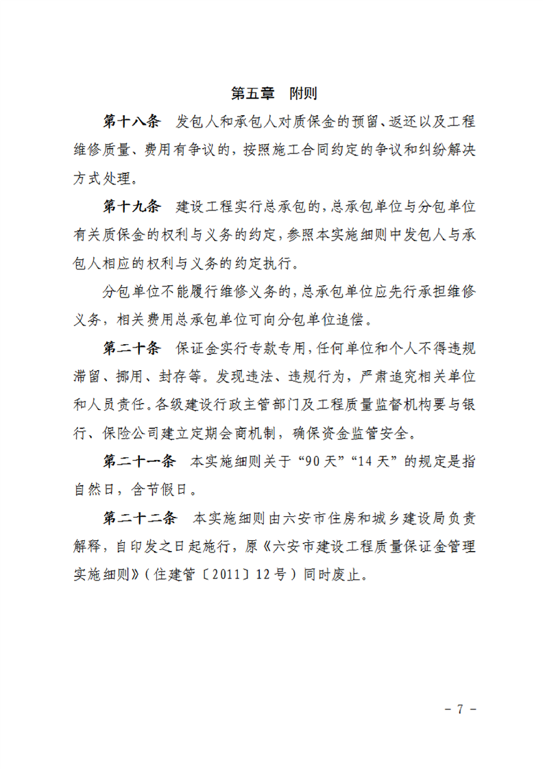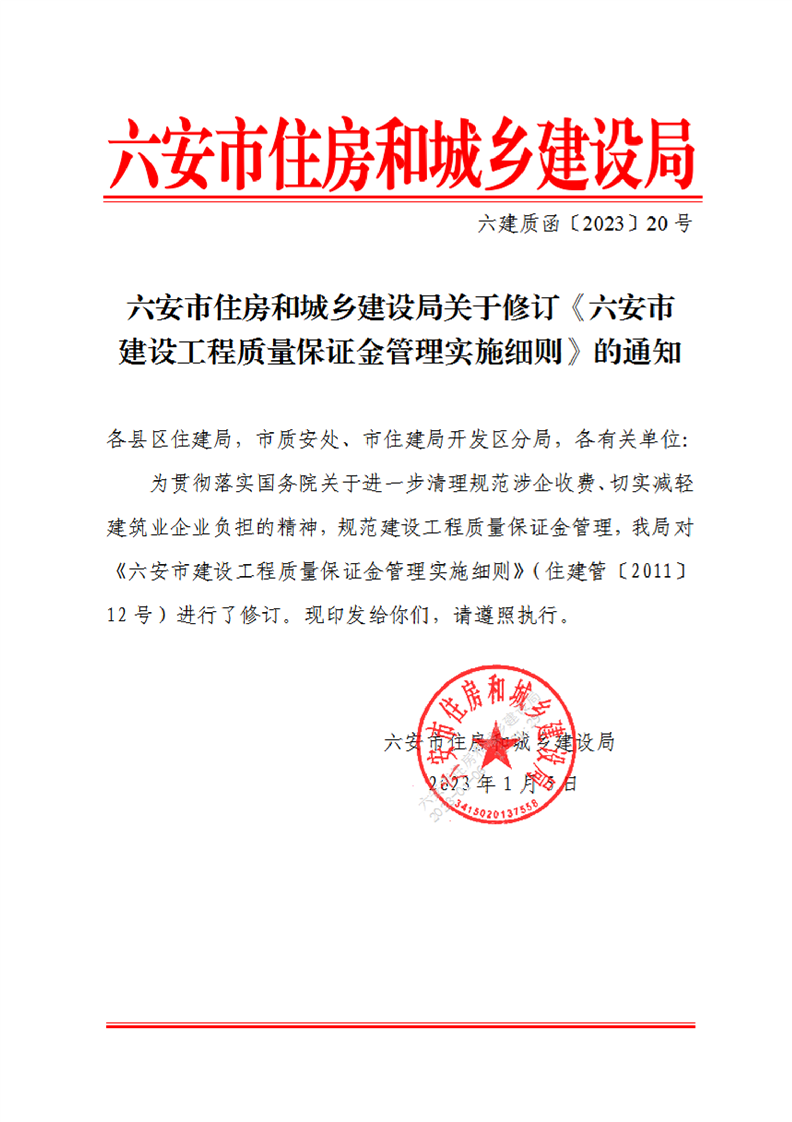 關于修訂《六安市建設工程質量保證金管理實施細則》的通知